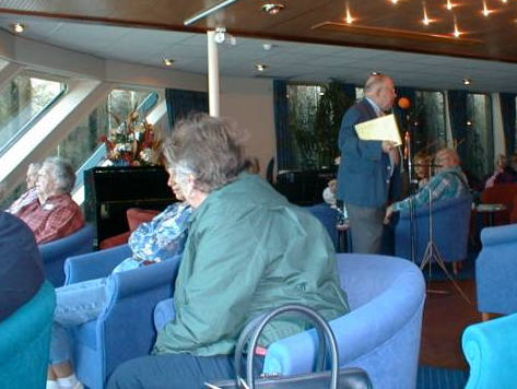 Mel Croan lecturing on 20th century German history and politics. We really were listening, but the scenery along this stretch of canal was exceptionally beautiful from the Panorama Lounge.