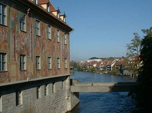 Old Town Hall and footbridge across the Regnitz River (you may not be able to make it out, but at the bottom of the mural, there are solid legs sticking out from one of the painted figures.)