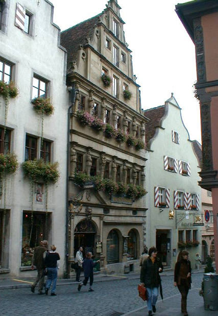 (A building on Schmiedgasse with carvings of the seven sins and virtures. )