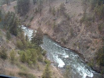 Saturday May 27, 2000 - Missoula to Helena After returning to the train, we resumed the ride from Missoula to Helena, continuing at first along the Clark Fork River. During lunch, we passed through Goldcreek, site of the first gold discovery in Montana. We also passed the site of the golden spike - the last spike driven in the Northern Pacific Railroad near Garrison. After Garrison, the train follows the Montana Rail Link line along the Little Blackfoot River as far as Elliston, then passes through a series of gulches taking a zig-zaggy route through the Austin/Mullen Pass to Helena.