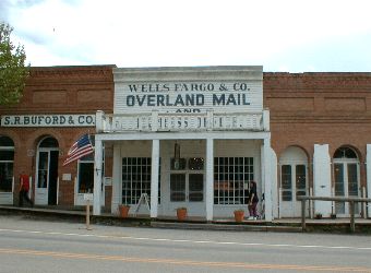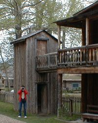 Sunday May 28, 2000 - Virginia City and Nevada City Our bus took us through the Montana ranch country to the restored ghost towns of Virginia City and Nevada City where we saw original buildings of the mining days. Virginia City features a Wells Fargo Mail Office. Particularly intriguing is a two-story outhouse attached to a hotel. We're not sure how it works!