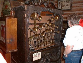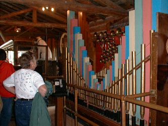 One of the highlights was listening to several mechanical music machines in the Nevada City Music Hall, including a huge band organ and an "Obnoxous Horn." After that we traveled by bus to Manhattan where we reboarded our train, had cocktails, appetizers and dinner while traveling over Bozeman Pass to Livingston, through beautiful rolling countryside. We had been scheduled to visit the Livingston train depot, but were not able to because of some renovation work. We spent the night in Livingston, which is the end of the line for our train trip.