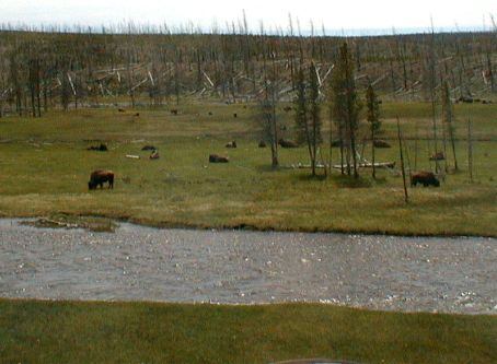 Monday May 29, 2000 - Yellowstone We entered the park at the North Entrance, just past Gardener, stopping at Mammoth Hot Springs. The plaque at the top of the arch says "For the Benefit and Enjoyment of the People." The first thing we noticed about Yellowstone Park is the abundance of wildlife - particularly elk and bison.