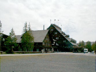 Monday May 29, 2000 - Yellowstone There ae some interesting historic buildings within the park. The Old Faithful Inn is old and impressive, and still used for overnight lodging. We stayed the night at Lake Yellowstone Hotel and are amazed at the size of the rooms after sleeping on the train for three nights. The full-sized showers are also appreciated.