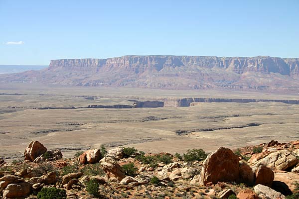 View of Glen Canyon rims at Horseshoe Bend from the top of the hill along the trail
