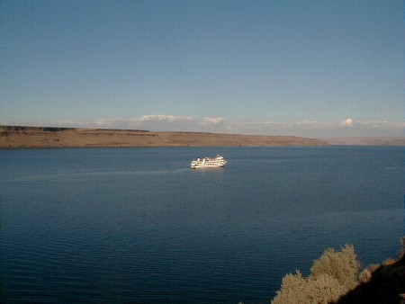 The view of the Columbia, looking up-river from the bluff at Hat Rock State Park. Our ship is anchored as we spend some time at this park.