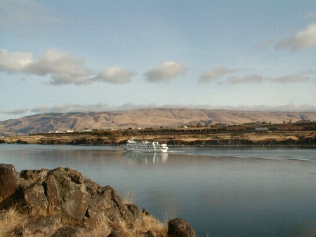 The Sea Bird leaving us at The Dalles, as we examine Rock Fort on our downstream tour of the Columbia River Gorge. From here, we travel by bus along the Columbia River Scenic Highway (US 30) to Hood River, Oregon.