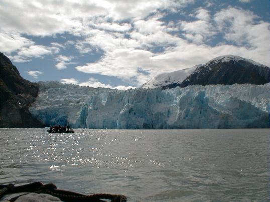 This area is full of icebergs, many occupied by baby harbor seals and their moms. The Zodiaks are used to get up close to the glacier without disturbing these animals.