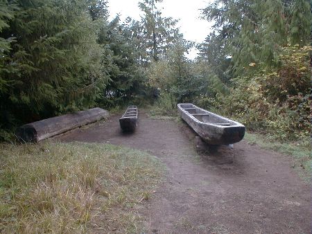 Dugout Canoes at Fort Clatsop, replicas of the canoes used by the Corps of Discovery while descending the Clearwater, Snake, and Columbia Rivers.