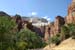 Zion Canyon is located in the southern section of Zion National Park. The Virgin River has cut a relatively narrow space between the two rock walls of Navajo Sandstone. The canyon is easily seen from viewpoints and trails close to the canyon floor and accessible by a free shuttle. Several moderate hikes take you from the river to higher points with views of the valley below.
