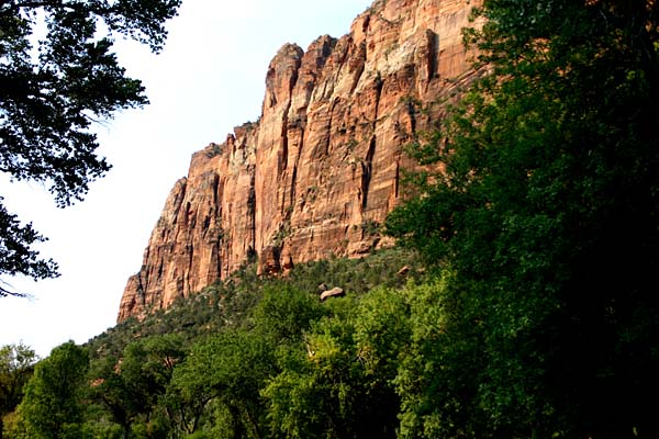Sandstone walls above the Virgin River near the start of the Emerald Pools trails