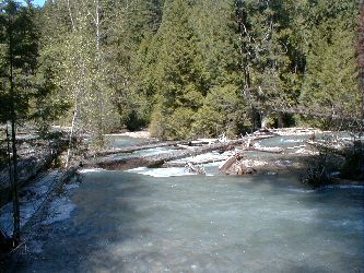 Wednesday May 24, 2000 - Start of Lindblad Tour, Glacier National Park At one o'clock, we joined our Lindblad Expeditions tour group at the airport where we were served a light lunch. Our expedition leader is Scott Carsley, a Geologist and Owner, Co-founder of Yellowstone Alpen Guides . The expedition historian is Harry Fritz, Professor of History, The University of Montana We then got on the Rimrock Stages Trailways bus and headed for Glacier National Park. We rode up Going to the Sun Road again (still not open over the pass) and went for a hike at Trail of the Cedars nature trail, along a very full Avalanche Creek.