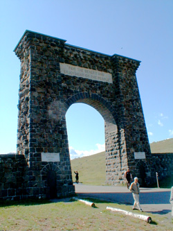 Monday May 29, 2000 - Yellowstone We entered the park at the North Entrance, just past Gardener, stopping at Mammoth Hot Springs. The plaque at the top of the arch says "For the Benefit and Enjoyment of the People." The first thing we noticed about Yellowstone Park is the abundance of wildlife - particularly elk and bison.